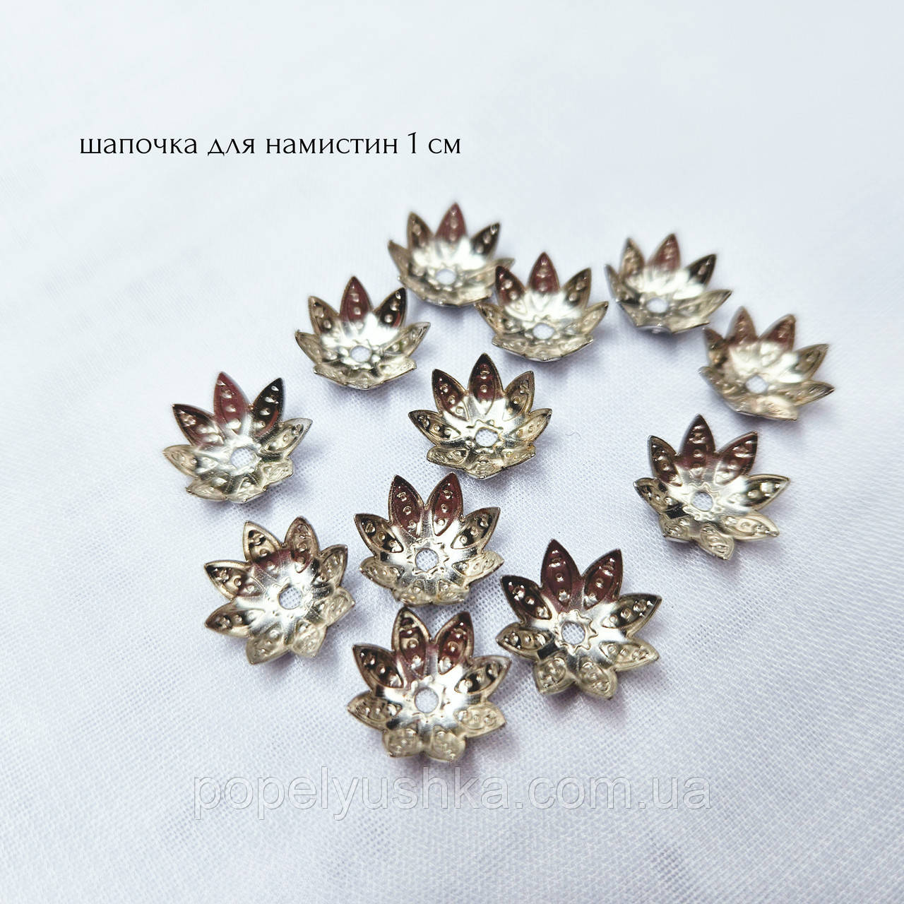 Металевий обіймач (шапочка) срібного кольору для намистин.Розмір 10 мм.